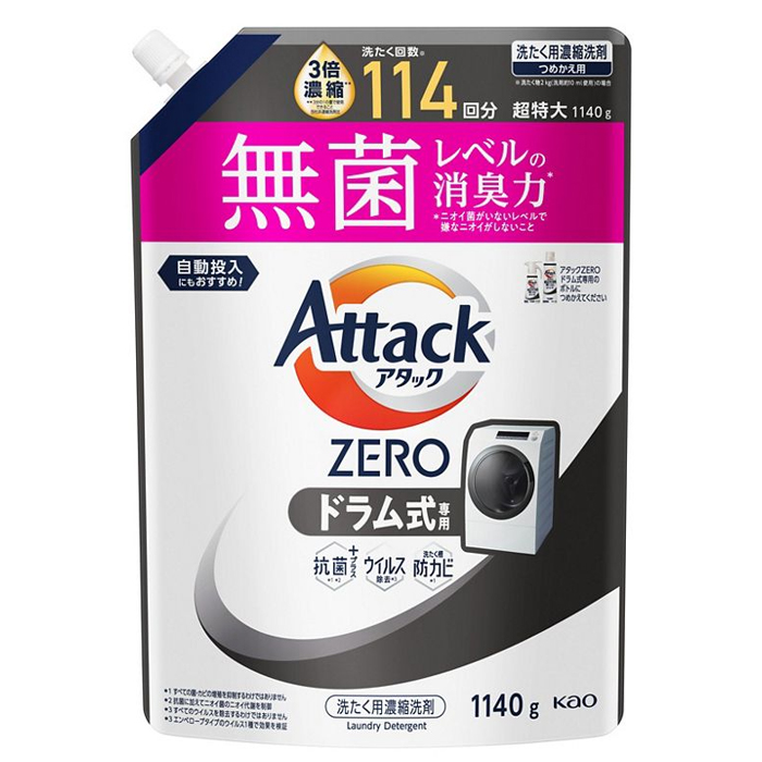 KAO Attack ZERO Суперконцентрированное жидкое средство для стирки, сменный блок, 1140 гр